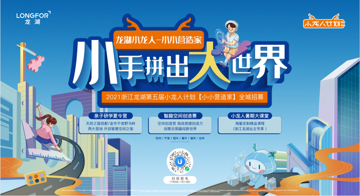 如何才能让家长安心放心,又能让孩子在这个暑假嗨皮学习两不误?一起参与2021浙江龙湖小龙人计划“小手拼出大世界”吧!龙湖业主&珑珠用户家庭6-10岁儿童均可参与,0门槛报名,“亲子研学夏令营、智趣空间挑战赛、暑期大课堂”三大主题活动,五天四晚成都夏令营,这个夏天一起趣闯新世界!