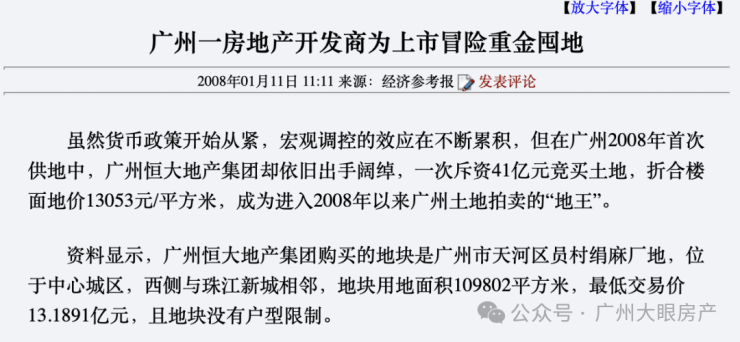 其实,这不是绢麻厂地块首次拥有地王头衔,早在2008年1月,恒大以41亿天价竞得员村绢麻厂地块时,它就已经是天河地王。
