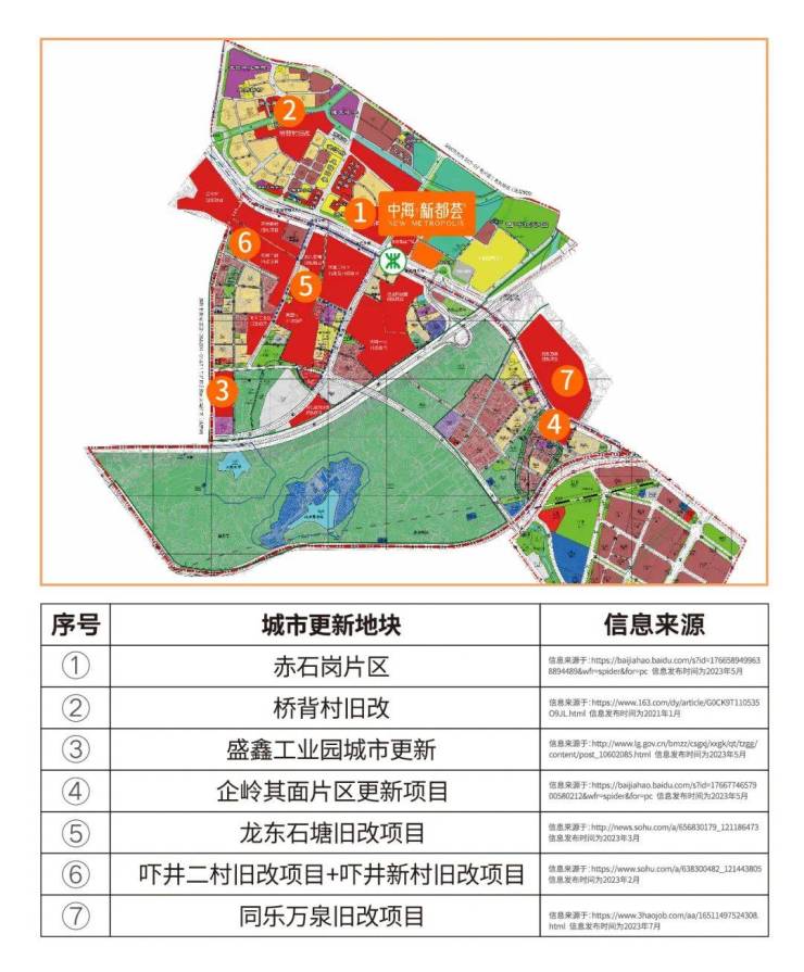 地铁3号线及16号线的开通,大力促进了龙中居住核心板块外拓发展,项目周边超百万方城市更新,多个旧改项目(石塘东方银座旧改、吓井二片区、赤石岗、盛鑫工业园、同乐企岭其面片区)环绕③,未来将围绕龙东站核心形成品质住宅区,重塑城市居住品质。