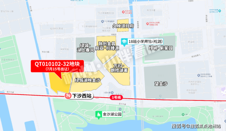 从位置看和湖映金沙是如出一辙:位于整个钱塘区金沙湖区域的核心,金沙湖公园的北面,1号线下沙西站地铁口,周边居住氛围浓厚,优势明显。
