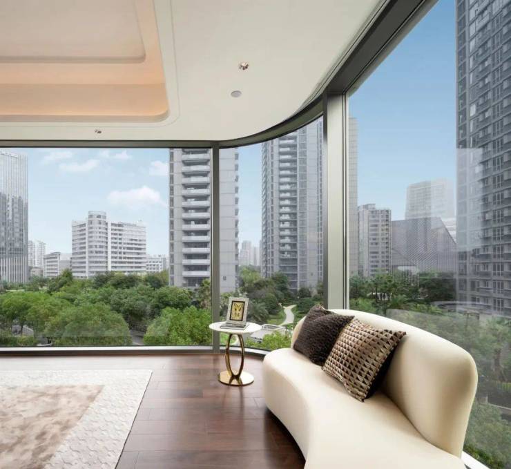 站在落地窗前俯瞰,南侧便是锦绣之城的中轴大花园,交付四年多,依旧如仪仗般大气规整。即使几年来身边新秀迭出,但它仍以超9万的二手成交价,领衔申花。