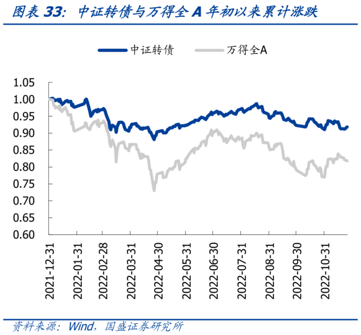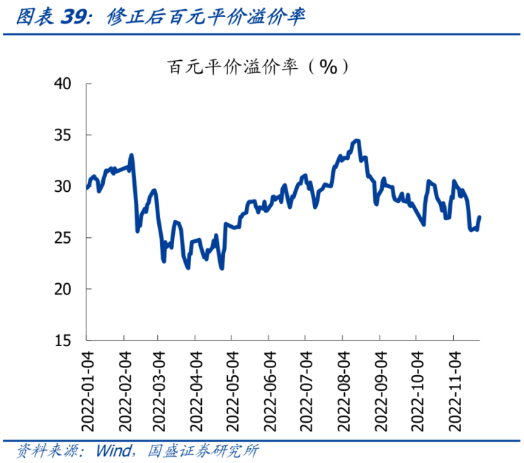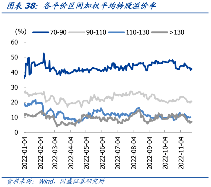 转债估值企稳反弹。截至11月25日,修正后的百元平价溢价率周度变动1.29%至27%,处于2017年以来86.6%分位数,分不同平价区间看,平价70-90元、90-110元、110-130元以及大于130元区间的平均转股溢价率分别变动1.65、-0.02、4.55、1.7个百分点至47.74%、28.09%、21.68%、10.18%。