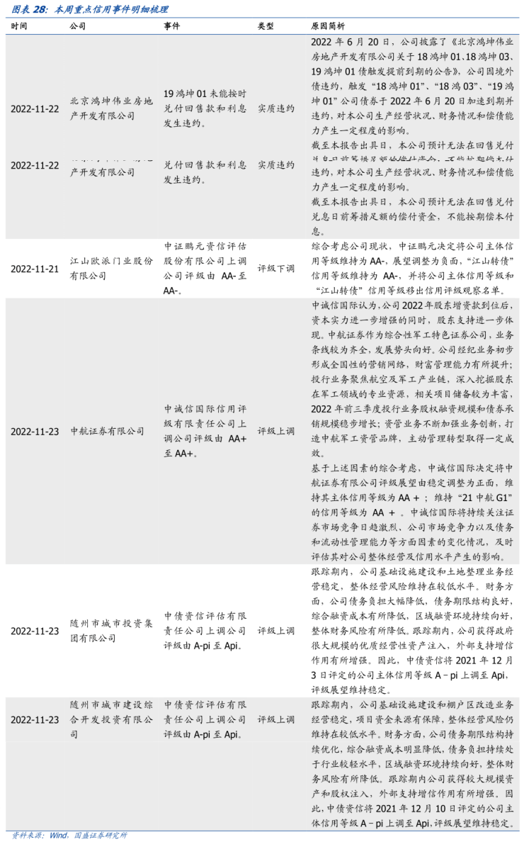 违约方面,本周(2022.11.212022.11.25)1家主体发生债券违约。评级变动方面,1家主体评级下调,3家主体评级上调。