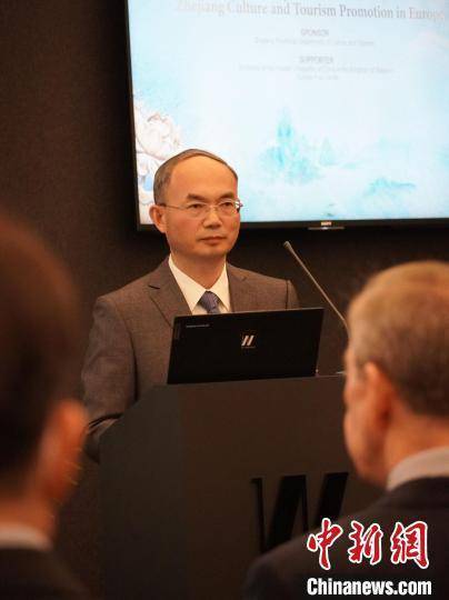中国驻比利时大使曹忠明在推介会上致辞。 浙江省文化和旅游欧洲推广中心供图