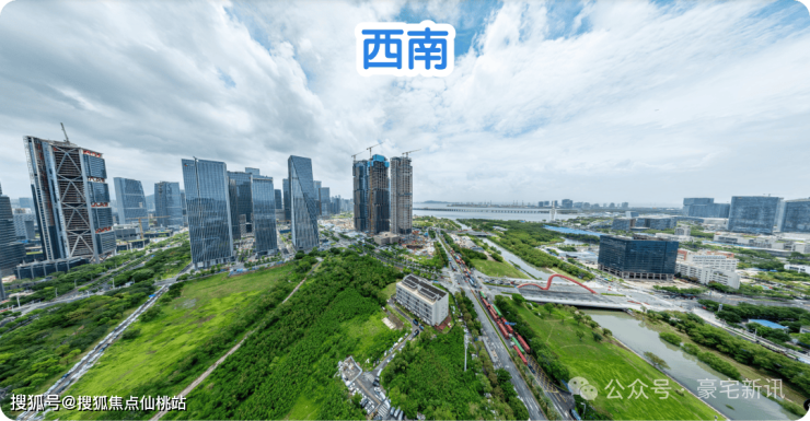 北拥双界河,西望前海湾,周边被 双界河公园、前海石公园、桂湾公园 等多个生态公园环绕,实现了都市核心与自然静谧的奇妙平衡。