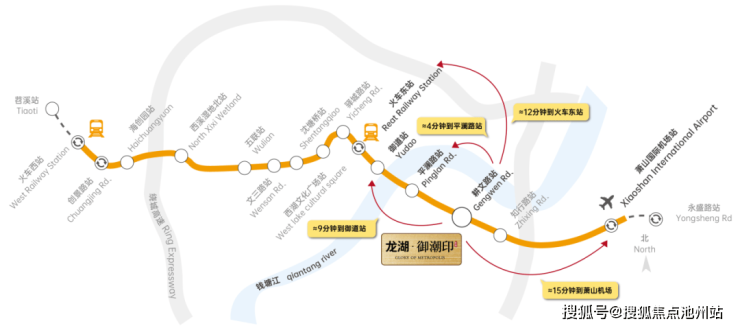 项目坐落于江南科技城南单元,以地铁19号线耕文路站(直线距离约300米)为核心交通枢纽,可1站直达江河汇、3站衔接亚奥核心区,更能快速串联萧山国际机场、杭州西站等城市门户。