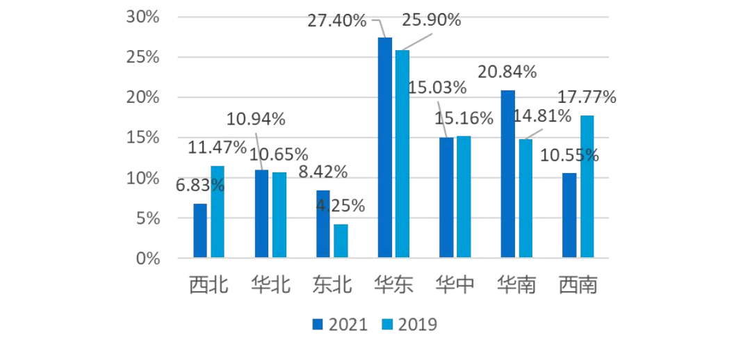 全国总体较平衡,西部地区有待优化都市休闲的业态布局。南北方都市游市场发展差距呈现收敛趋势,较疫情前南北方出游人次占比差额缩小,由2019年的2:1缩小为1.63:1。东西部差距有所拉大,西部都市游市场占比下降明显,东北三省都市游发展势头较好,占比由4个点提至8个点。从地理区域划分来看,西北西南省份都市游受疫情影响恢复受限,西南地区瑞丽局地疫情多次反复,西北地区对疫情防控要求严格,都市游受到一定程度的制约。华东、华中、华北都市游市场恢复趋于平稳。
