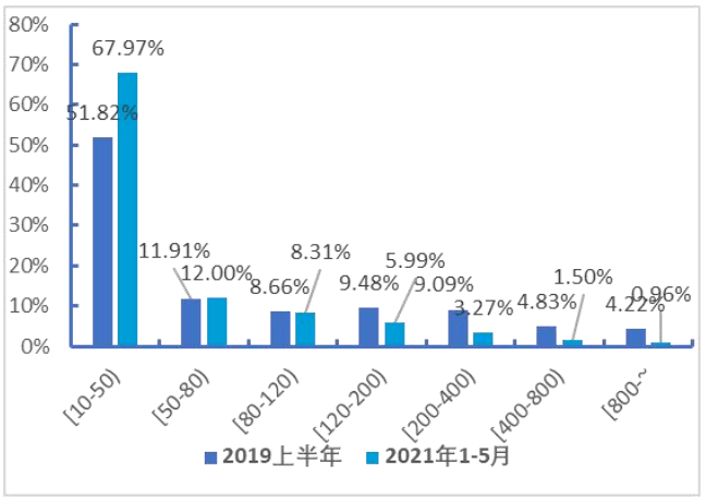 都市游市场稳步恢复,节假日对都市休闲带动作用显著。2021年上半年1至5月全国都市游出游人次较2019年恢复程度逐步提高。