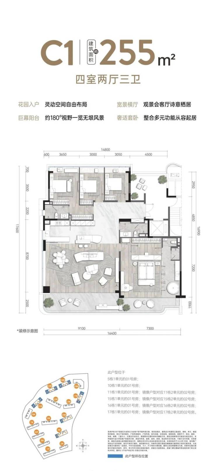 面积:建筑面积约114-364㎡旅度2.0悦府尊邸