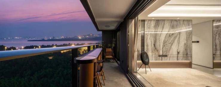 滨海润府深度融入滨海风情,巧妙地将海浪元素融入设计之中,以浪漫的滨海曲线为灵感,创造出优雅的弧形阳台。同时,运用金属线条的匠心设计,塑造出高端且富有手工质感的外立面。全屋采用先进的系统门窗和中空玻璃系统,既彰显出建筑的优雅气质,又营造出宁静舒适的室内环境。这种刚柔并济、节奏与艺术相融的设计,使得滨海润府成为一处优雅、贵奢、经典的滨海建筑艺术品。