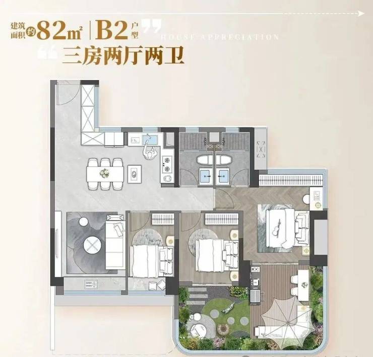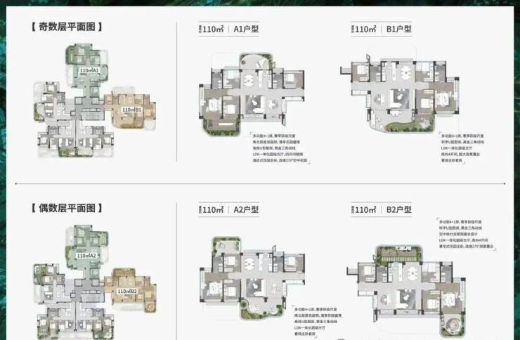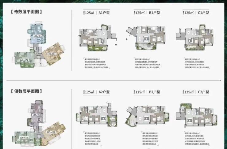 【户型面积】:82㎡-110㎡-125㎡三至四房