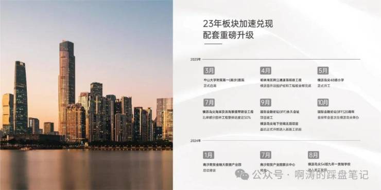 IFF 永久会址建成并投入使用、广期所南沙产业园建设中,中山一(南沙分院)已正式运营,全国最快18号线线落地(已开通运营),四站到珠江新城,多个重点设施配套加速落地红利兑现。