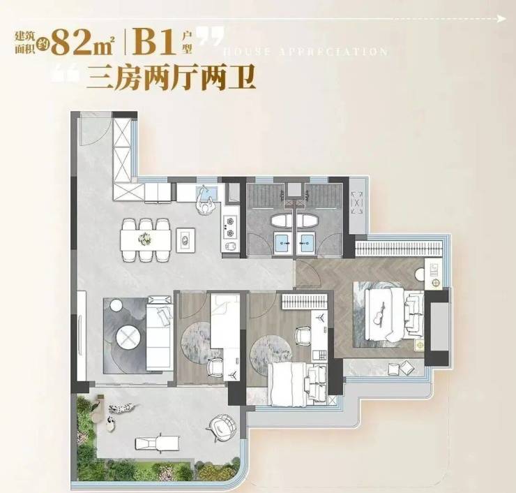 别人的85㎡做小三房一卫,招商的82㎡能做3+1房,未来在二手市场上也会更加有优势。