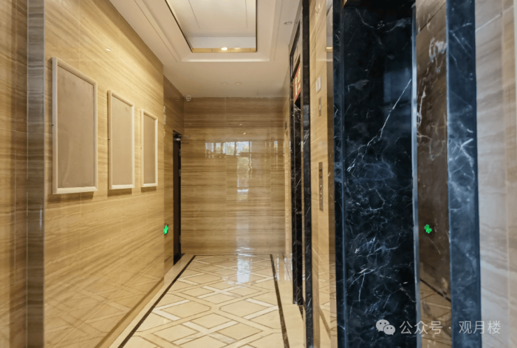 项目共建设20栋住宅楼,其中南区14栋、北区6栋,楼层19-65层,2梯3户、2梯4户、3梯3户、3梯4户。建筑采用新现代主义风格,外立面比较简约,灰白色外立面的城市天际线,映衬蓝天白云。入户大堂虽然简单,但也都贴砖了,电梯厅采用黄色条纹瓷砖,整体也比较明亮整洁。