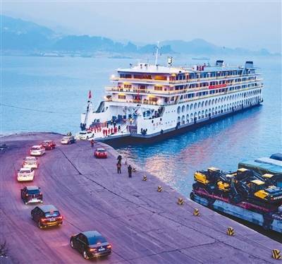 开春以来,三峡游船市场逐渐升温。2月26日,三峡库区湖北省宜昌市秭归港银杏沱滚装码头,正在装车上客的“新高湖”滚装游轮即将开启今年的首次航行。