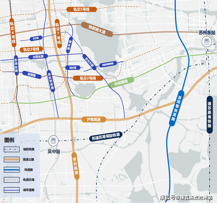 在交通层面,苏通湖城际铁路、通苏嘉甬铁路构建起1-1.5小时城际圈,常台高速、沪常高速贯通南北东西,中环南线与独墅湖南隧道的通车,将湖西南片区与园区的时空距离缩短至5分钟左右。加上轨交2、3、7号线的交织成网,助力湖西CCD实现了与苏州全城的高效连接。