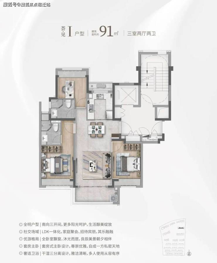 ①建面约91㎡3房2厅2卫:总价400万级预算错过不再有的高性价比之选!