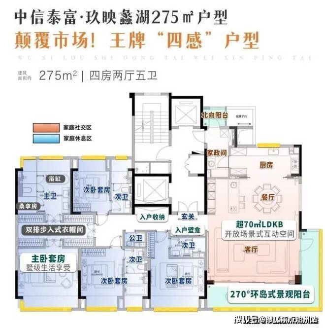 以建面约275㎡户型为例,它的奢享性在同面积段的户型中一马当先。