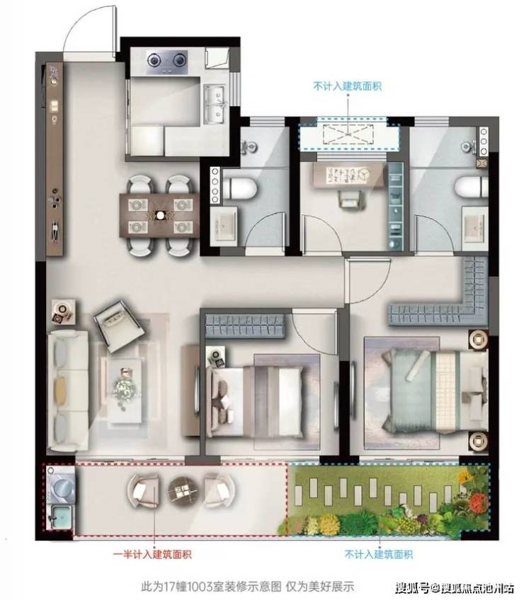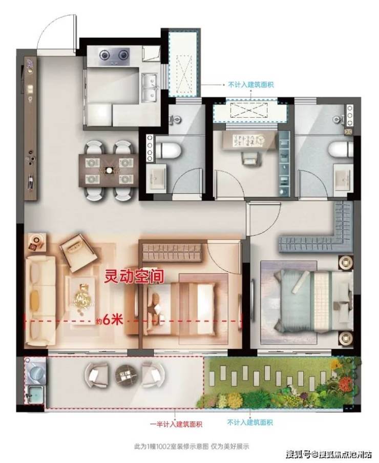 而且,该户型优化结构布局,做到少承重设计,使得空间灵活多变,购房者可以根据自己的需求,轻松打造出理想的空间布局。