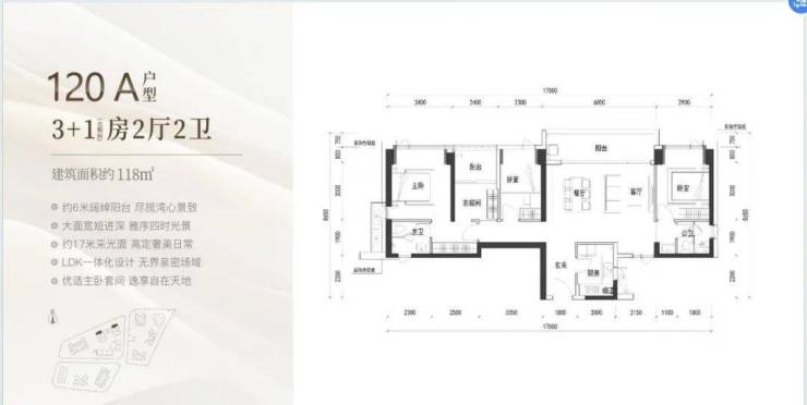 明星户型超6米阳台开间,全维度巨幕景观视野,尽揽湾心万千风景。