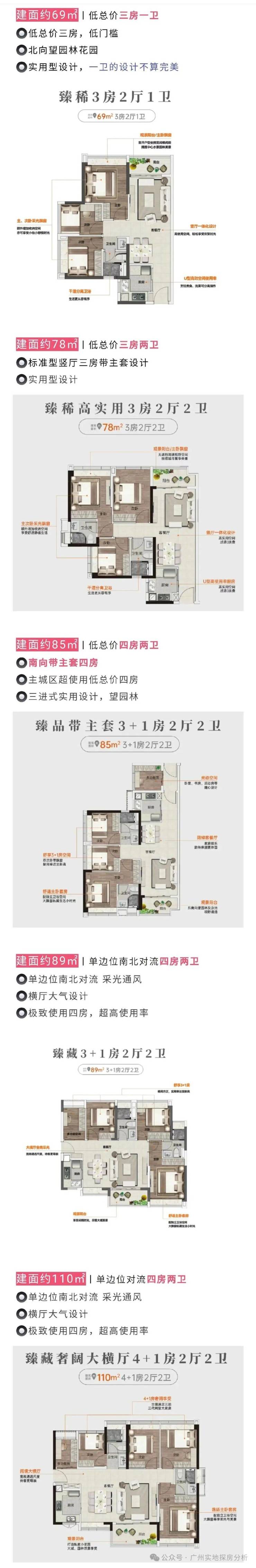 户型面积:建面约69-78-85-89-110㎡三至五房