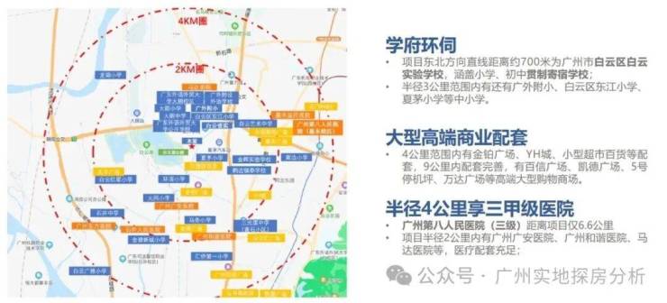 项目配建2800㎡公立9班幼儿园,对口夏茅小学(计划扩容为九年一贯制学校),对口的中学是南悦中学+大朗中学。距白云省实学校约200米(民办,覆盖小学至高中)。