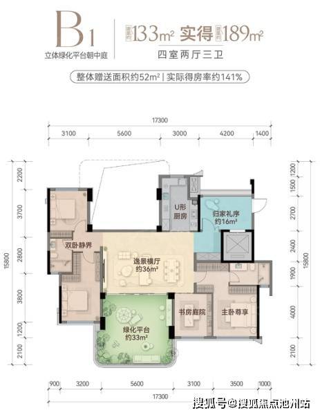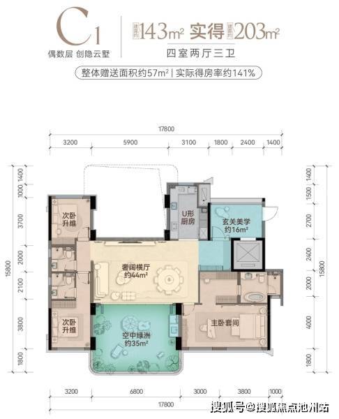 建面约 258㎡户型:四房两厅四卫,四卧全套房设计,奢配面积超 45㎡的行政级主卧套房。拥有约 85m² 的超尺度 LDKG 天幕巨厅,三面采光,270 度全景舱环幕视野,高约 6.3m 面积约 50 平米的空中花园庭院与天幕巨厅双面连接,还有双空中岛院设计,彰显奢宅风范