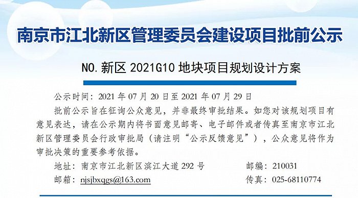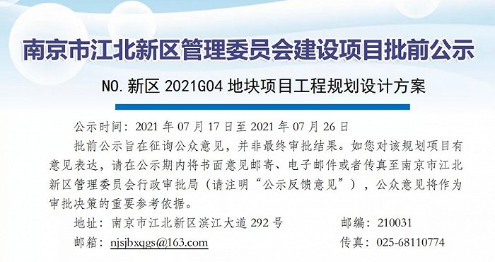 近日,南京市规划和资源局官网公示了江北新区NO.2021G10项目规划设计方案。项目位于南京市浦口区江北新区康健路以北、横江大道以西,康安路以南,康盛路以东。