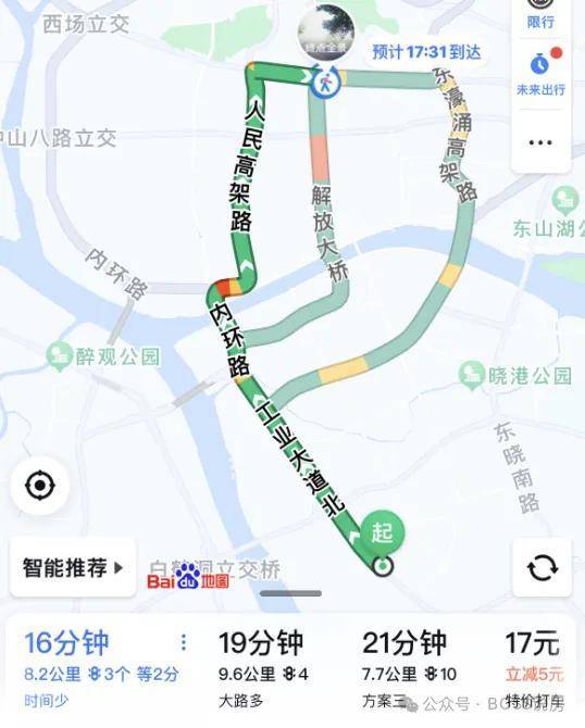 自驾到珠江新城,走工业大道转内环,7个红绿灯,大概25分钟左右;