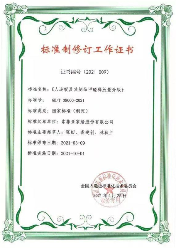 新标准的实施为人造板行业发展奠定了基调,也促使整个人造板行业的绿色环保发展与开拓,更好的满足消费者对健康环保的家居产品需求。而每一个家居品牌也责无旁贷,必须做到与时俱进。索菲亚作为一家始终专注于绿色环保的全屋定制企业,一直以来,索菲亚都专注于打造健康环保产品,以身作则,坚持创新研发,促使行业的绿色可持续发展。