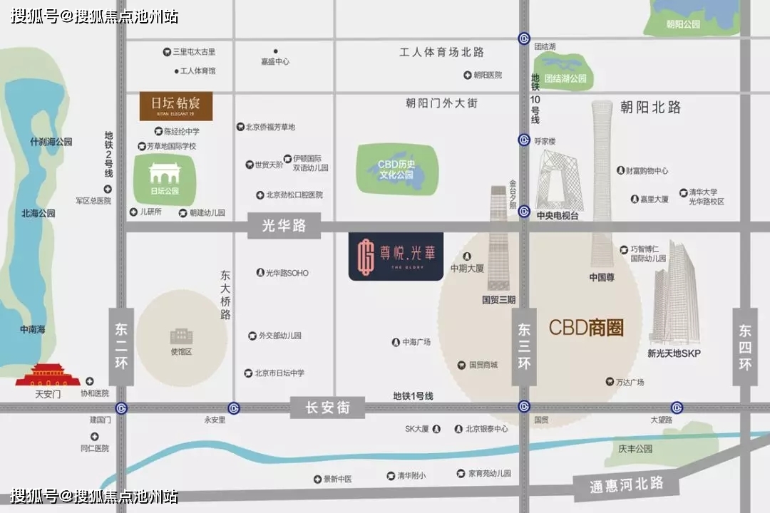 区位,项目东侧对望北京排名前列高楼中国尊,高达528米的中国尊以“时代之尊”的显赫身份奉献“华夏之礼”,宣告着CBD进入发展新时代;西邻排名前列使馆区,国际文化氛围浓厚;南接国贸三期,距离繁华一步之遥;北毗CBD历史文化公园,繁华中独享静谧。