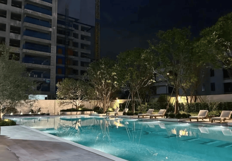 社区内部复刻安缦度假美学:近50米恢弘酒店式环岛前庭、约1500㎡林下浮岛花园(围炉茶叙听静水流深,太治愈了!)、约1000㎡无界漂浮泳池(浸入式体验安缦式漂浮艺术)。