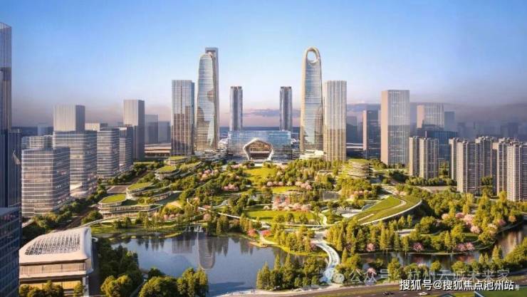 云门公园(直线距离约350米),总面积约30万方,相当于42个足球场,它把江南园林的丘、峰、台、阁都搬了进来,还规划了“公园十景”,未来感十足。最大的特色是有一条巨大的空中绿廊,把西站、办公楼都连了起来。里面还会建青少年活动中心(城西分中心)、文化活动中心、健身中心,户外儿童活动场地还有大片草坪和水系。