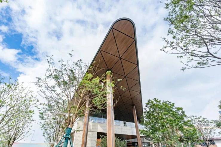 在生活美学馆,约9.5米挑高的超大屋檐不光颜值出众,以后也可以为业主遮阳挡雨。
