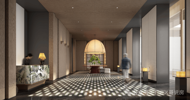 约40米长的岭南美学门庭,对标了高奢酒店的设计。