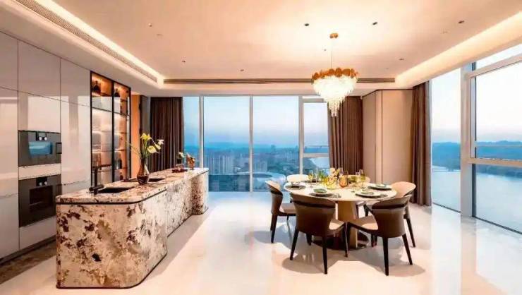 项目以钱塘潮涌为设计灵感,主打336-402㎡天幕瞰江平层,