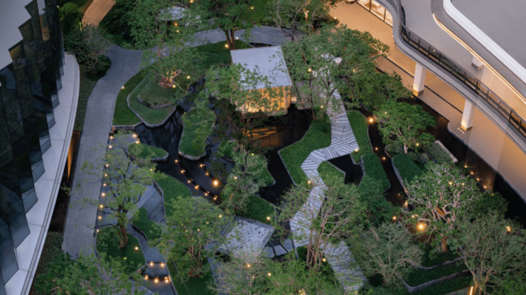 不仅如此,在约7米抬高式盖板之上,项目还打造约7米架空层,形成了14米的高度差。