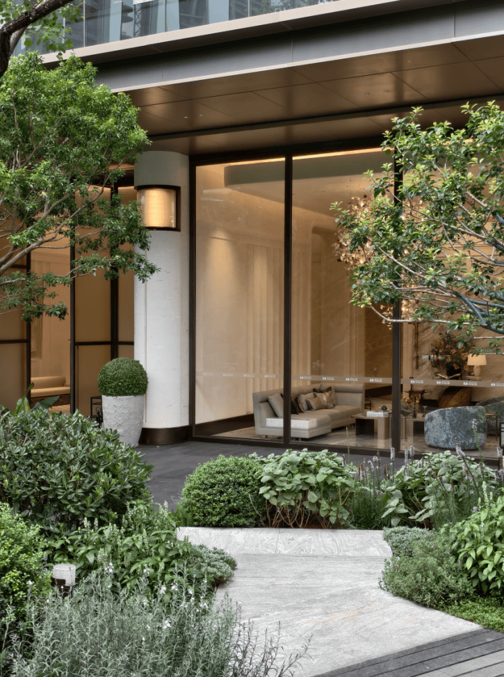 此外,库班灰奢石拼接而成的步道,纹理美观,触感温润且质感厚重,都是品质,皆是细节。