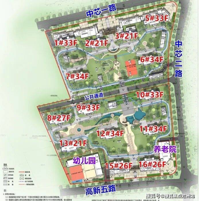 二期共8栋,公共通道南侧的8#27层,9#、10#33层,11#、12#34层、13#21层,15#、16#26层,养老服务用房在11#,物业管理用房在15#,底层架空休闲在16#。13、15#紧邻规划的12班幼儿园。