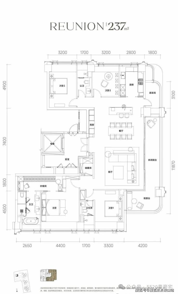以 197㎡四房三卫户型为例,采用板式结构,南北通透,通风和采光条件绝佳。四开间朝南,客餐厅一体化设计,面宽达 7.8 米,连接约 9.5 米景观阳台,无论是清晨的第一缕阳光,还是傍晚的落日余晖,都能尽情享受。主卧套房配备 270° 转角飘窗和独立衣帽间、双台盆卫浴及浴缸,面积达 35㎡,尊享全景仓视野,为您打造极致的居住体验 。