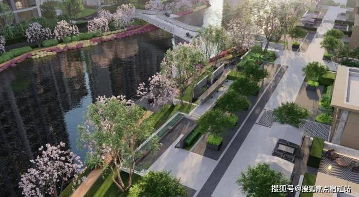 国贸地产代建了一座约1.8万方的滨河市政公园,而且三座岛屿社区都有不同的主题,并设置了非常丰富的景观节点。由于2条天然水系的存在,整个社区可以被环绕成一个紧密的小型生态系统,有效地形成一道环境保护屏障。同时,每块土地以及组团都可以拥有独特的水系景观,让人眼前一亮。一旦从小区入口进入,从外部延续而入水系美景又将与生活场景、活动空间有机结合,景观设计既有质感又不失烟火气。