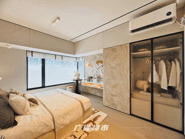 3间卧室位于里侧,主卧套房设计,带卫生间、步入式衣帽间、270°L型落地飘窗。