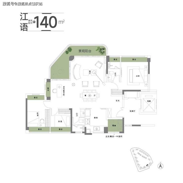 全南向采光、全望江,南北通透对流;