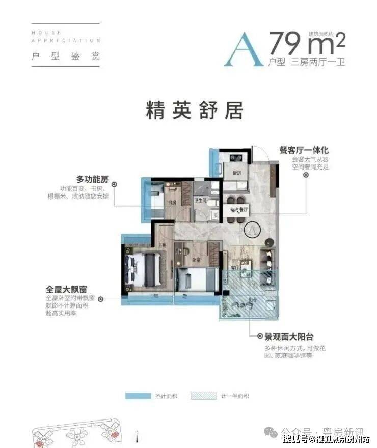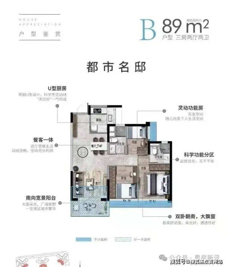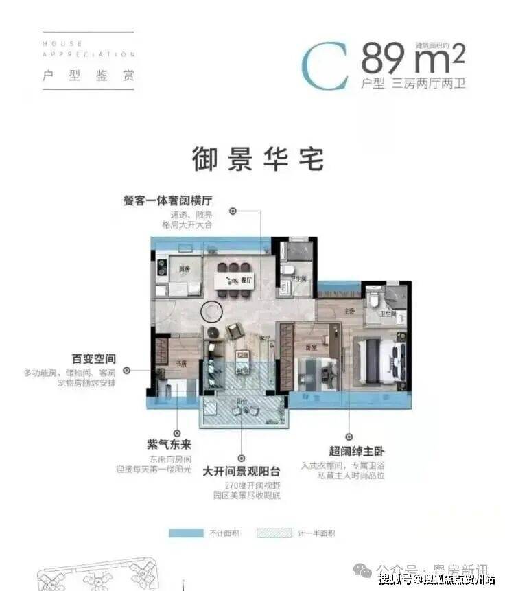 ■ 89㎡三房两厅两卫人性化设计,功能独立方便实用厅出阳台设计,享园林四季美景超高赠送面积,创意空间随心享