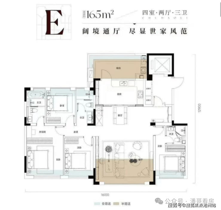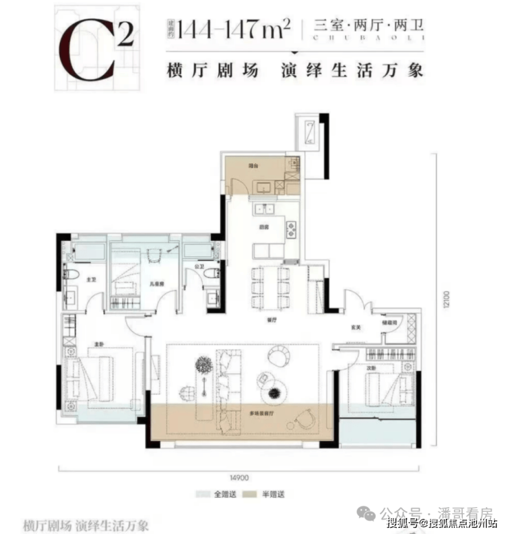 位于10、12号楼内,像124平的放大版,特色是四开间朝南,南向面宽达到14.9米,面宽更宽,进深更短,采光面更大,功能性更强,客厅开间也比较优秀,后期可以保留大横厅,或者改造为3+1房也是可以的。赠送面积更多,得房率更高,适合纯改善朋友。