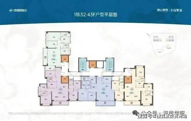 167㎡的5房2厅3卫,1栋02/2栋03高区户型,电梯入户送独立公区,设计的是竖厅双龙抱珠格局,四开间朝南,超宽敞客厅巨幕阳台,主卧大套间设计,U型厨房,双公卫三段式分离,得房率:72.07%(不含赠送),西南朝向。