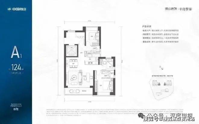 124㎡的3+1房2厅2卫,1栋02/2栋04户型,电梯入户送独立公区,设计的是竖厅格局,LDKB一体化设计,动静分区,主卧套间设计,还有一个多功能间可以做书房,U型厨房,公卫三段式分离,得房率:72.07%(不含赠送),西南朝向。