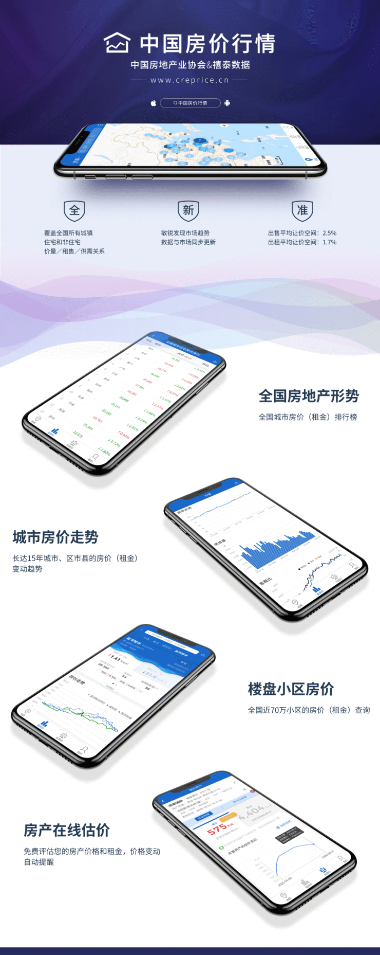 中国房价行情平台在中国房地产业协会的领导和组织下,以禧泰房地产大数据为基础,实时向社会发布全国各城市、城市各区域和各楼盘小区的房价、租金行情实况、预报以及供求信息。