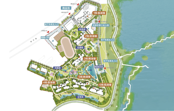 小区内部设施完善,环境优美。拥有 1400㎡星级无界观湖泳池,居民可在泳池中尽情享受湖景与游泳的乐趣。5.2 万㎡叠水主题园林景观,打造出如诗如画的居住环境,让居民仿佛置身于花园之中。家楼下的 6KM 临湖健康绿道,为居民提供了休闲健身的好去处。2.8 容积率 + 44.8%超高绿地率,匠造超低密度健康生态社区,空气清新,居住舒适度高。