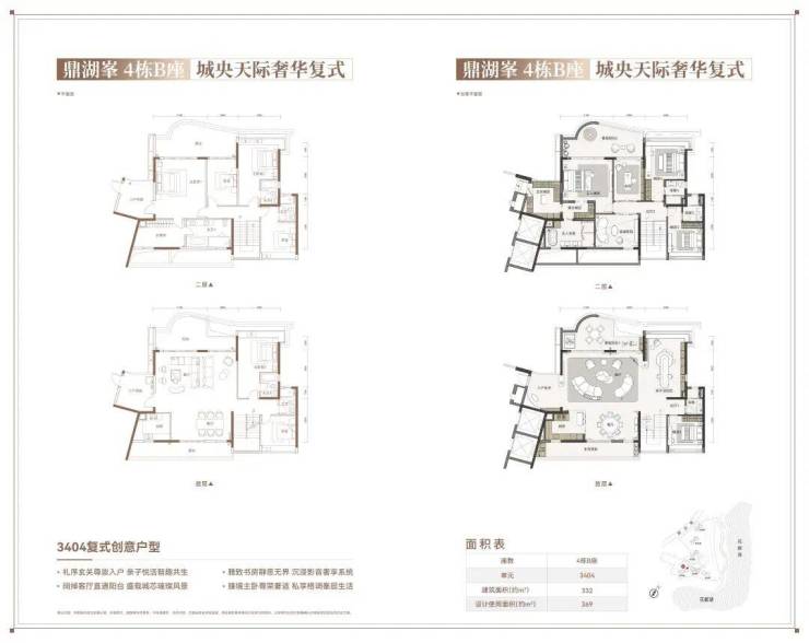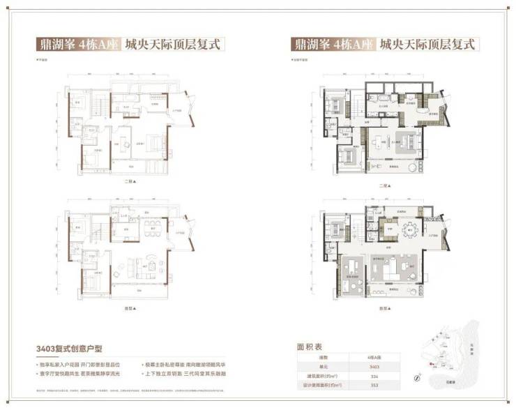 鼎湖峯 4 栋 A 座 3404 户型 266㎡ 轻奢创意顶复·270°城市天际线